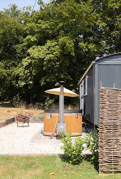 Beautifully presented for up to two guests, you can rest and restore in your private hut without leaving the farm. Relax in your own wood fired hot tub and cook over a fire pit.